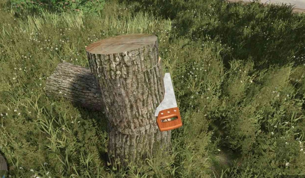 Cięcie drewna jest aktywowane lewym przyciskiem myszy, co pozwala na precyzyjne i kontrolowane użytkowanie. Podczas cięcia narzędzie emituje autentyczny dźwięk piłowania, zwiększając realizm. Jednocześnie w miejscu cięcia generowane są efekty cząsteczkowe wiórów, wizualnie odzwierciedlające proces piłowania.